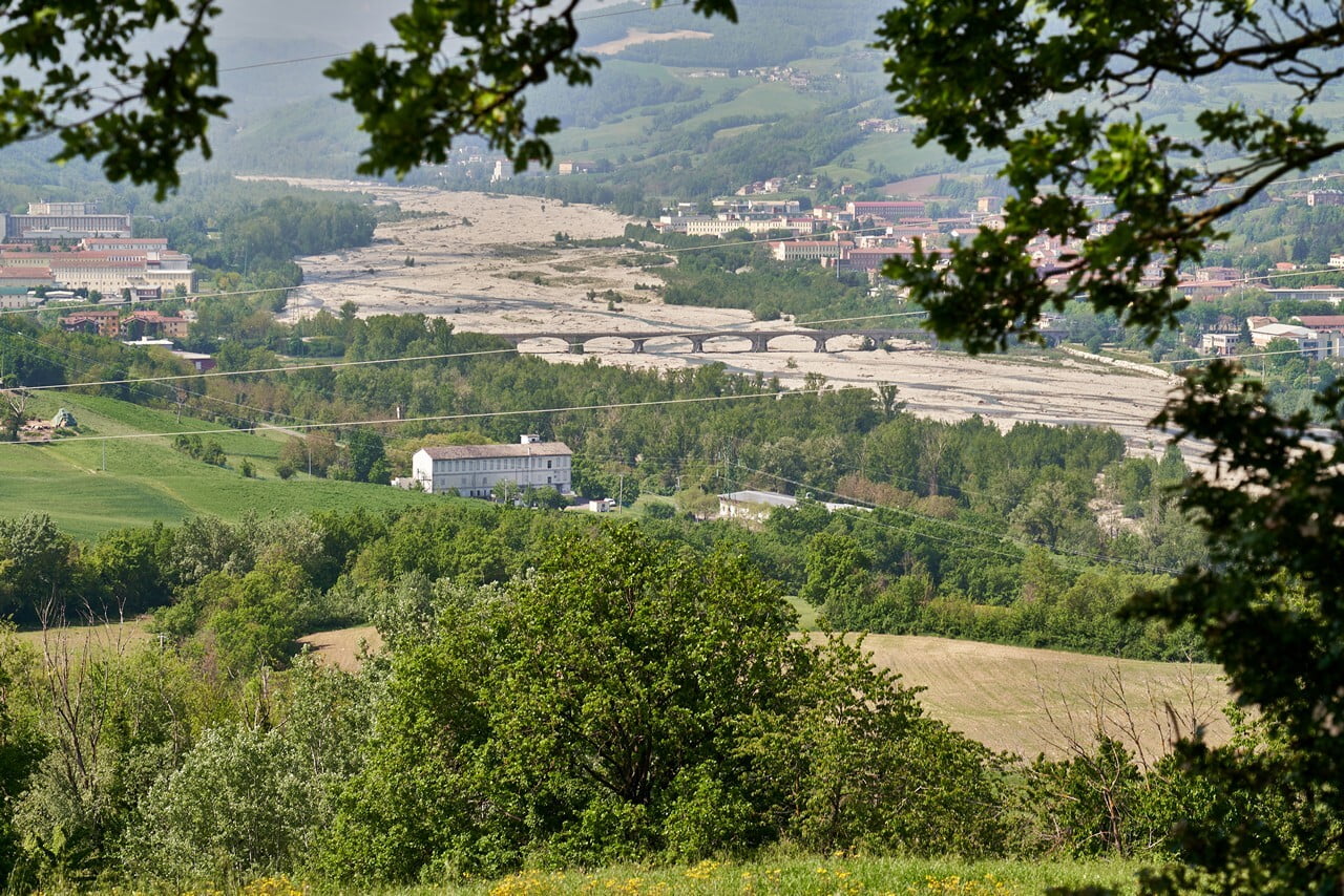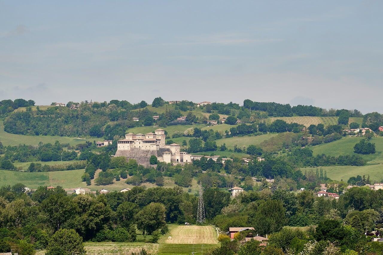 Scendendo verso Langhirano l’occhio viene attratto dall’imponente castello di Torrechiara, un maniero quattrocentesco situato sulla cima di un colle a destra del fiume, in una posizione dominante e visibile da chilometri di distanza; inaspettatamente i castelli si riveleranno il filo conduttore di questo viaggio, a dimostrazione che l’esperienza sul campo è ben più sorprendente di qualsiasi pianificazione, per quanto ben fatta. I ritmi serrati non consentono una deviazione a tema medioevale, quindi proseguo in direzione di Cozzano, scollinando attraverso una strada meravigliosamente attorcigliata lungo la quale val la pena fare una pausa alla chiesa di San Bartolomeo che domina la vallata e la strada in direzione di Calestrano.